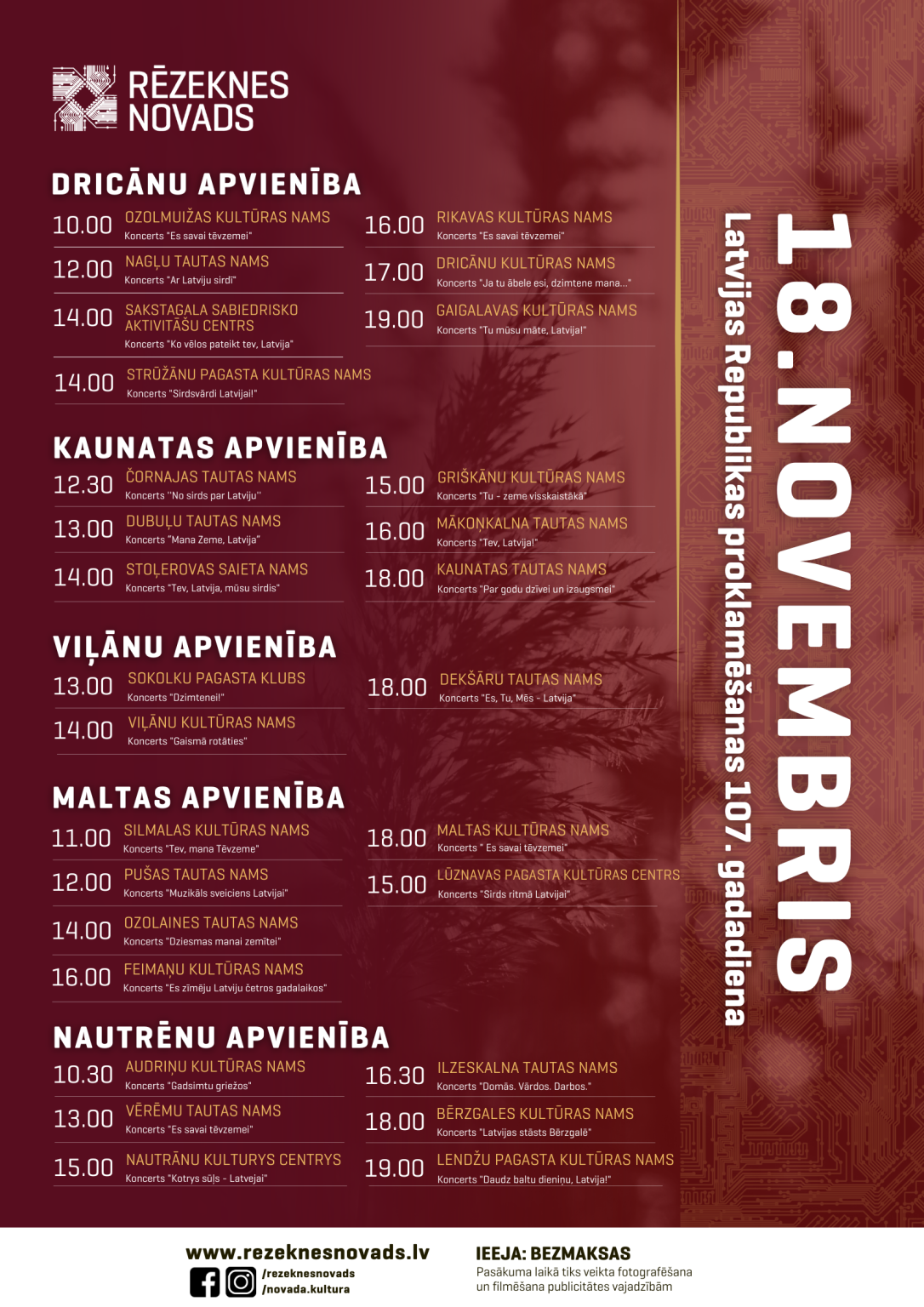 Plkst. 16.00 koncerts “Tev, Latvija!” Mākoņkalna pagasta tautas namā;