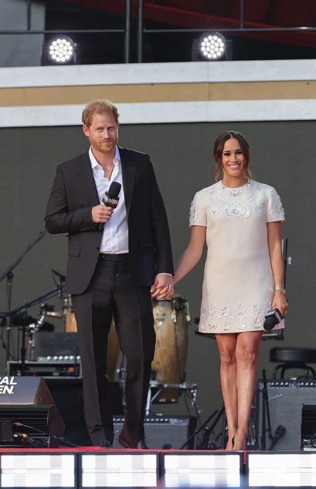 Kad Megana bija tērpusies šajā kleitā, apmeklējot “Global Citizen Live” koncertu, stiliste norāda, ka zīda ziedu aplikācijas un kristālu rotājumi piešķīra tērpam dimensiju un izslacinātu greznību, tajā pašā laikā neaizēnojot pasākumu un tā pausto vēstījumu.