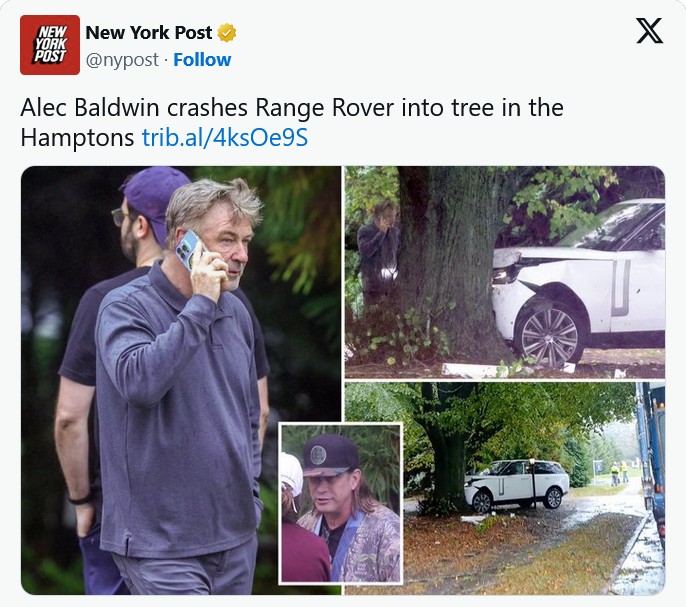 15.10.2025 Aktieris Alekss Boldvins un viņa brālis, arī aktieris Stīvens Boldvins, iekļuvuši autoavārijā, kad viņu automašīna saskrējās ar koku Hamptonā laikā, kad plašā ziemeļaustrumu vētra skāra Ņujorkas apkārtni.Saskaņā ar ārzemju mediju ziņoto, 67 gadus vecais Alekss bijis pie stūres. Videoierakstā, ko publicējuši mediji, redzams, ka baltā “Range Rover” apvidus auto priekšpuse pēc sadursmes ir ievērojami bojāta. Abi brāļi izkāpuši no automašīnas bez redzamiem savainojumiem un sarunājušies ar policijas darbiniekiem notikuma vietā.