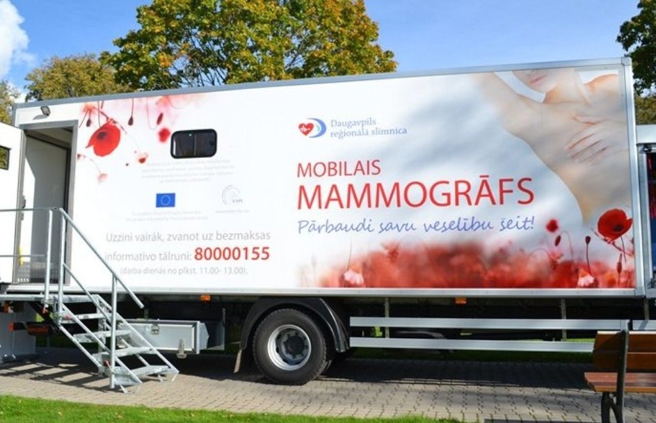 SIA “Daugavpils reģionālā slimnīca” valsts apmaksātās programmas ietvaros veic mobilā mamogrāfa izmeklējumus.