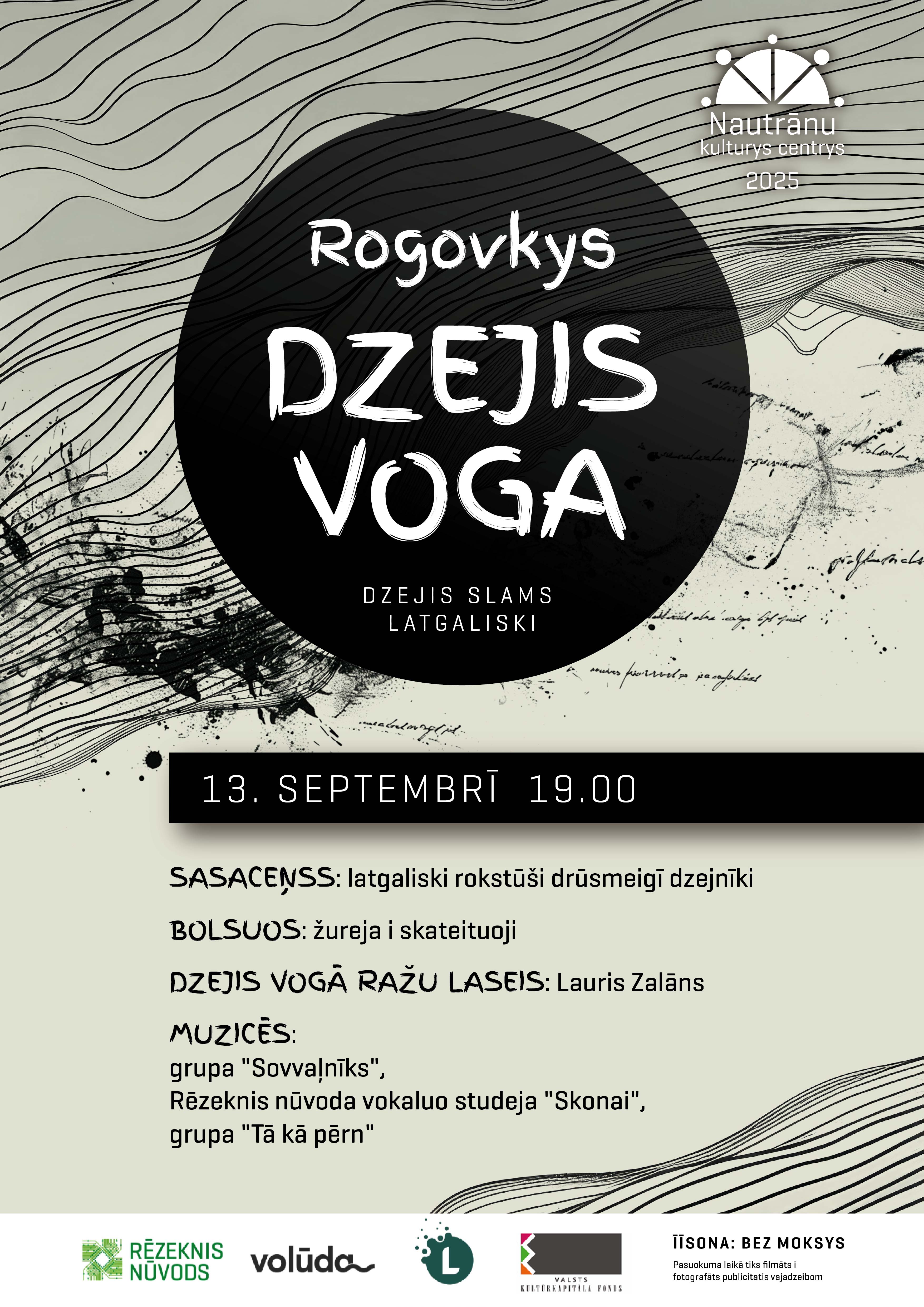 Проведение "Rogovkys dzejis voga" в этом году поручено руководителю мероприятий и радиоличности Лаурису Залансу. Посетителей мероприятия ждет выступление группы "TKP / tā kā pērn", ядром которой являются этномузыканты Эрик Зепс и Юлги Сталте. Кроме того, в мероприятии примут участие группа "Sovvaļnīks" и вокальная студия Резекненского края "Skonai", которые первыми озвучат новые произведения на стихи победителя прошлогоднего слэма Сильвестра.