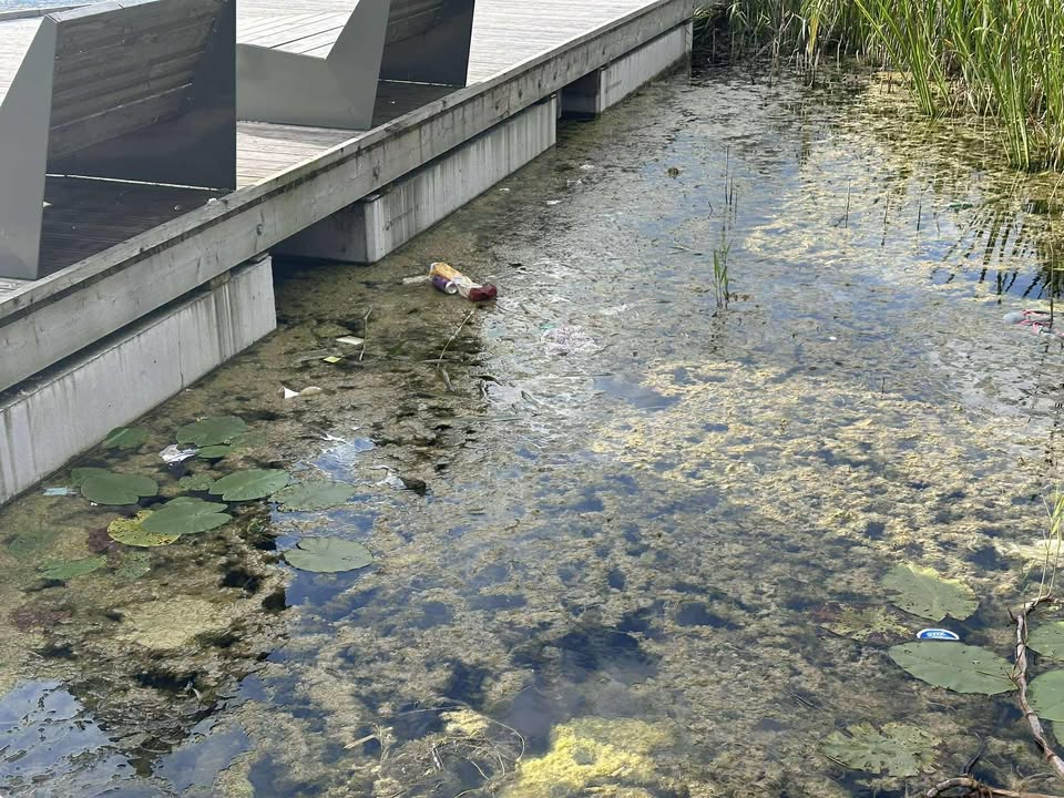 Озеро возле СПА-центра продолжает зарастать водорослями