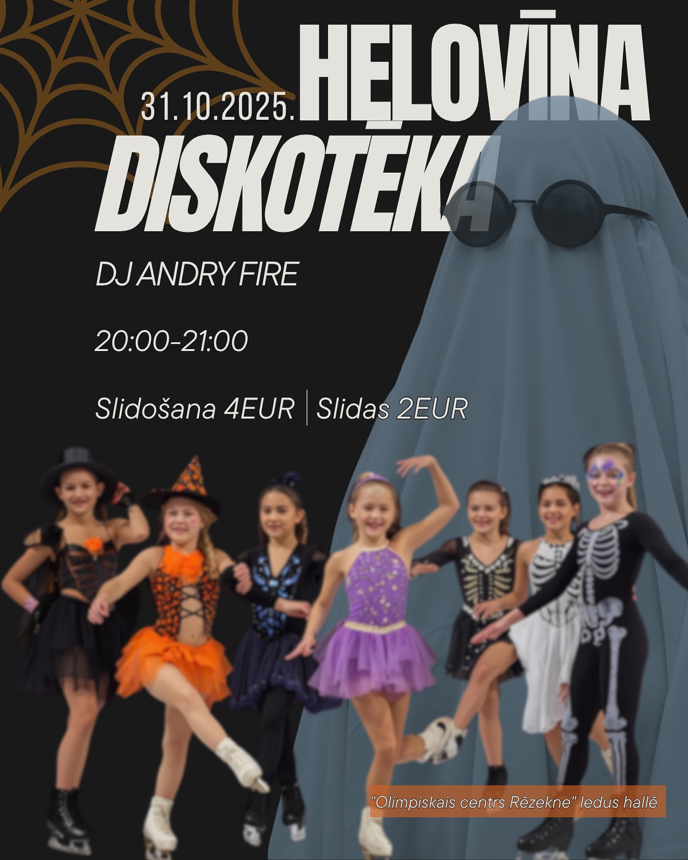 30.10.2025 31 октября с 20-00 до 21-00 в ледовом холле "Олимпийского центра Резекне" (ул. Стацияс, 30, Резекне) состоится дискотека на льду в честь Хэллоуина.Посетителей встретят призраки в образе фигуристов — вместе покатаемся, потанцуем и просто проведем вечер в крутой, призрачной атмосфере.