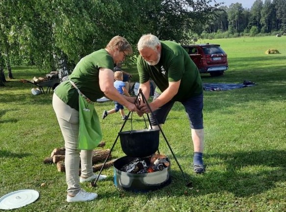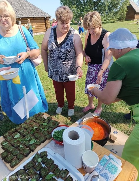25.08.2023 Межкраевое сотрудничество во всех сферах всегда приносит положительные плоды - показ своих талантов, обмен опытом, познание традиций других коллективов, знакомство с культурно-историческими местами и личностями.Так, в воскресенье, 20 августа, участники фольклорного коллектива “Bolta Vīšņa” и вокального ансамбля "Almus" из Дрицаны вместе со всоими детьми и внуками посетили Лиепсалы Ошупской волости Мадонского края — родные места Оскара Калпака, чтобы принять участие в мероприятии "Сениоры варят суп".