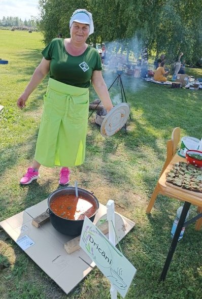 Возможно, благодаря не только своим хозяйственным и поварским навыкам, но и идеальной организации мероприятия, дружеской атмосфере, доброжелательному отношению организаторов, великолепной погоде мы стали вице-чемпионами по варке супа, заняв второе место в конкуренции семи команд. Не секрет, что в Дрицанах традиционно на различных мероприятиях готовят самую вкусную гречневую кашу, поскольку один из вариантов происхождения имени Дрицаны - "гречка" (по-латгальски dryči, дричи). На этот раз в качестве базы для супа мы использовали урожай своих помидоров. Под руководством шеф-повара Марите мы приготовили томатный суп “Cyta zupa”, который предложили отведать с ржаным хлебом собственной ввпечки и песто из базилика