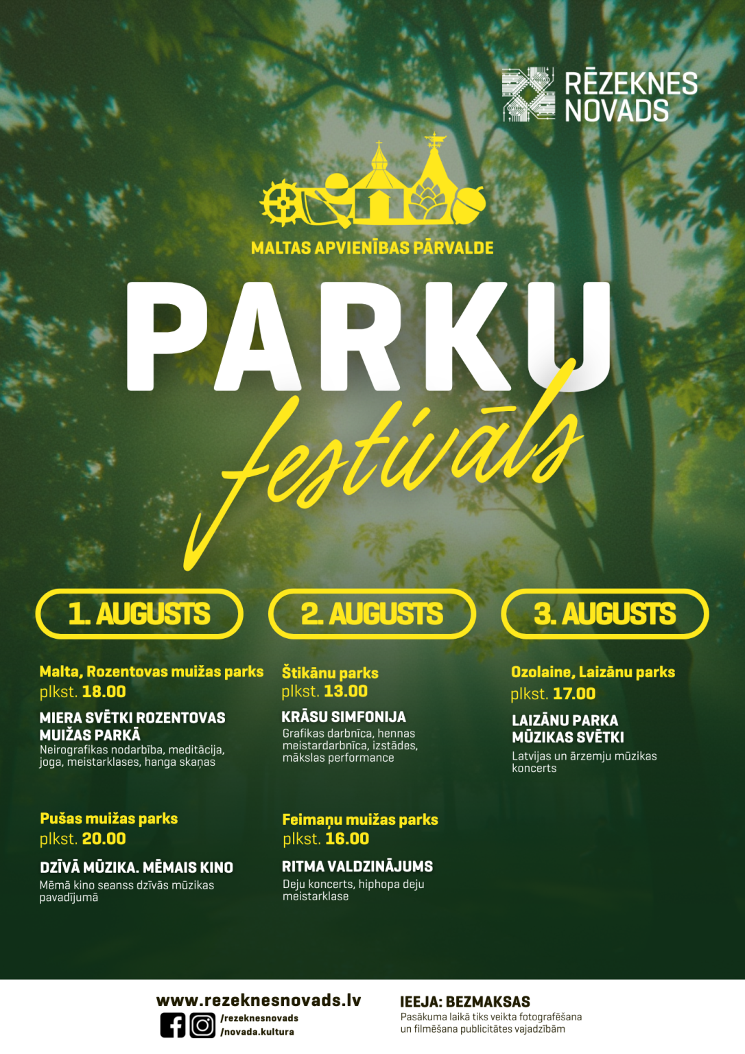 01.08.2025 С 1 по 3 августа в Малтском объединении уже во второй раз пройдет фестиваль парков, в рамках которого посетителей в течение трех дней ожидают мероприятия различной тематической направленности в пяти парках волостного объединения.В этом году фестиваль парков откроется в пятницу в парке усадьбы Розентова Малтской волости, которая является новым и небывалым до сих пор местом проведения мероприятий. В рамках фестиваля посетителей пригласят познать себя, помедитировать и почувствовать спокойствие, о чем свидетельствует и название мероприятия – "Праздник мира в парке усадьбы Розентова". Программу в 18-00 откроется мастерская нейрографики, позволяющая участникам увидеть свою повседневную жизнь с другой точки зрения. В 20-00 под руководством Эллы Шарыгиной пройдет практика йоги и медитации "Мир на Земле", в ходе которой будет создан общий посыл по повышению вибраций земли и укреплению коллективного мира. За этим последует щадящая практика йоги для глубокого восстановления и восстановления баланса на физическом, ментальном и энергетическом уровнях (просьба к участникам взять с собой гимнастический коврик). В 21-30 посетителей порадуют магические звуки ганга музыканта Юриса Лайзанса. На протяжении всего вечера спокойную атмосферу будет дополнять возможность раскрасить мандалы, создать ловцов снов и наслаждаться травяными чаями.