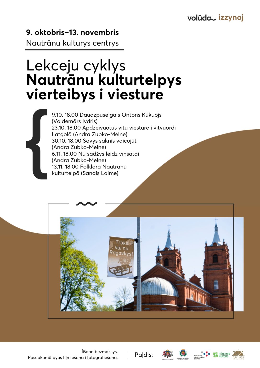 Чтобы познакомить широкую общественность с ценностями и историей Наутренского культурного пространства, образованием общины, а также способствовать пониманию укрепления ценностей, в октябре и ноябре в Наутренскогом культурном центре в Роговке Резекненского края пройдет цикл из шести лекций. 9 октября он начнется с рассказа об одной из самых заметных личностей культурного пространства — литераторе, художнике и общественном деятеле Антоне Кукойсе, а 22 ноября завершится вечеринкой, символическим поздравлением с включением Наутренского культурного пространства в список нематериального культурного наследия. В цикле лекций запланирован вечер документального кино, лекции о топонимах, населенных пунктах, создании родовых деревьев, фольклорных материалах и истории деревень, которые помогли бы больше узнать об исторических процессах и личностях как местным жителям, так и желающим из других мест.