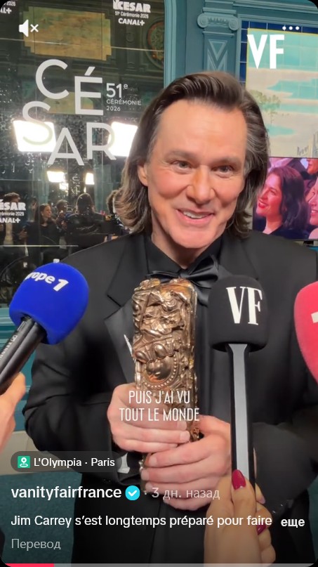 03.03.2026 Редкий выход 64-летнего Джима Керри в свет обернулся бурей обсуждений: поклонники не сразу узнали актера, заговорили о пластике и двойниках, а сам он тем временем представил публике загадочную возлюбленную и получил почетную награду.Джим Керри стал главным героем церемонии «Сезар»