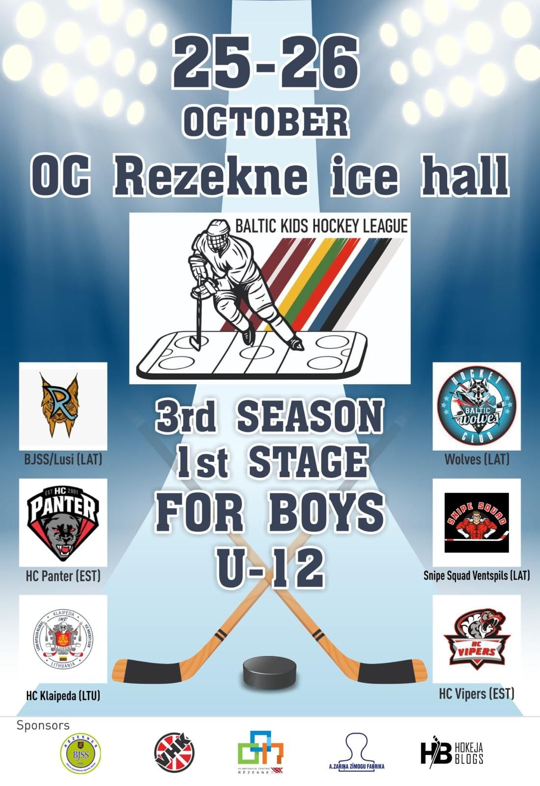 24.10.2025 25 и 26 октября ХК "Lūši" Резекненской ДЮСШ дома, в Олимпийском центре "Резекне", примет:- ХК "Panter" 2013/2014 (Эстония)