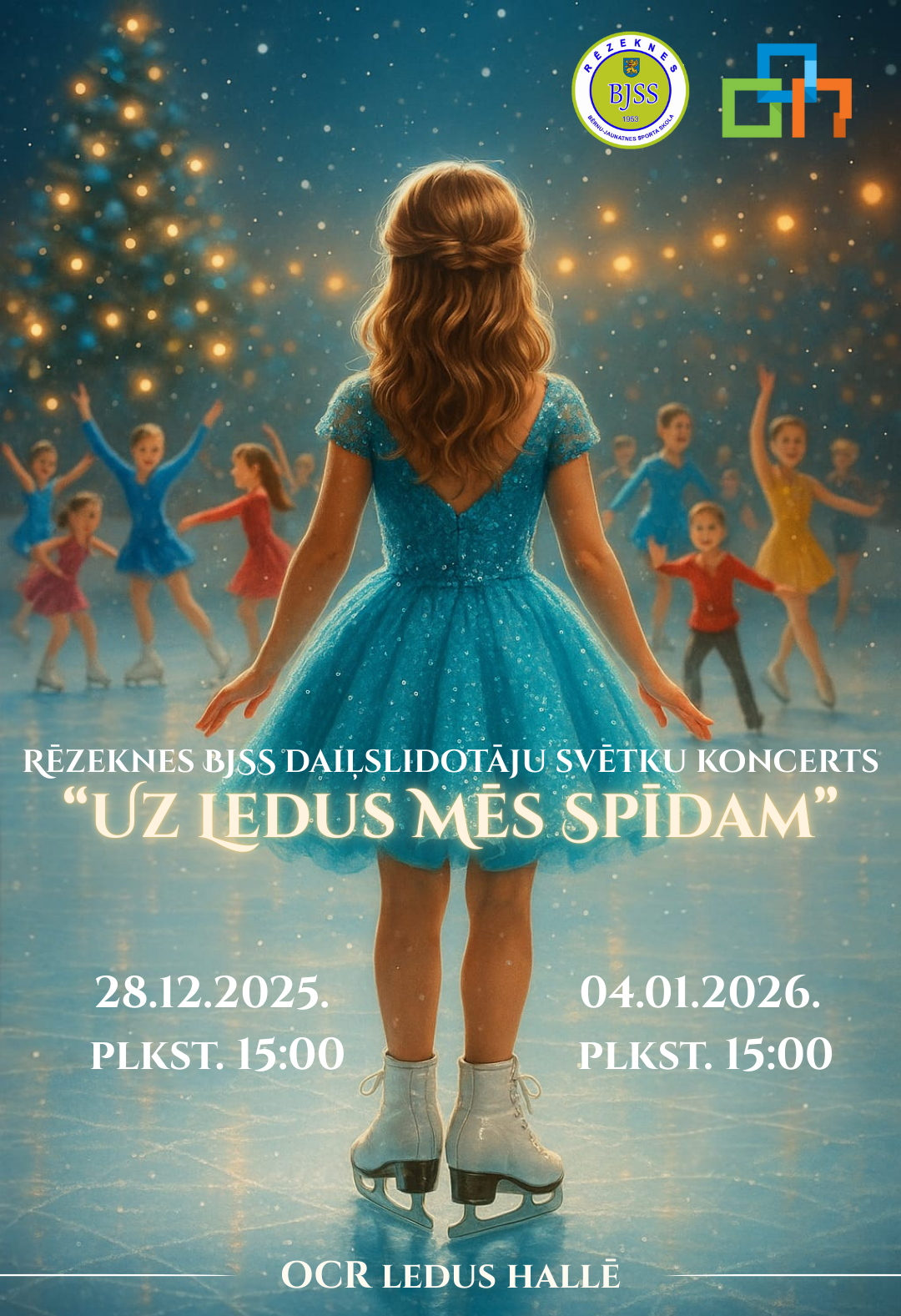 16.12.2025 Резекненская ДЮСШ с радостью приглашает семьи, друзей и всех любителей фигурного катания на особое событие, на котором будут блистать наши молодые таланты.Из-за большого отклика и интереса 28 декабря концертное представление состоится 2 раза — в 15:00 и в 17:30.