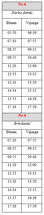Vēršam uzmanību arī uz to, ka kustību saraksts maršrutā Nr.6 “Blaumaņa iela – Slimnīca – Vipinga” tiek atgriezts pie ierastās kustības shēmas: