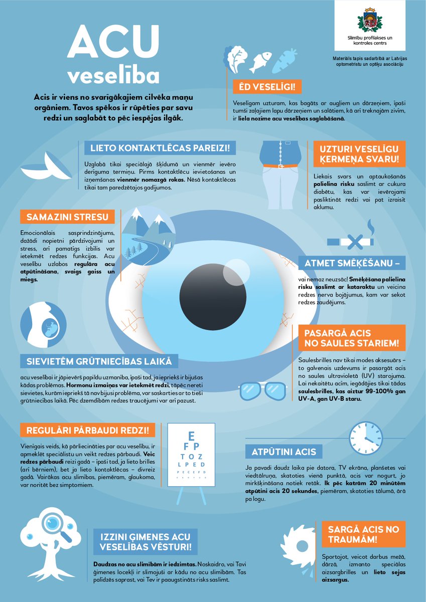 19.02.2018Acis ir viens no svarīgākajiem cilvēka maņu orgāniem un ikviena spēkos ir rūpēties par redzes saglabāšanu. Ieskaties SPKC speciālistu veidotā infografikā un uzzini, kas ietekmē acu veselību un ko Tu vari darīt, lai saglabātu redzi pēc iespējas ilgāk!