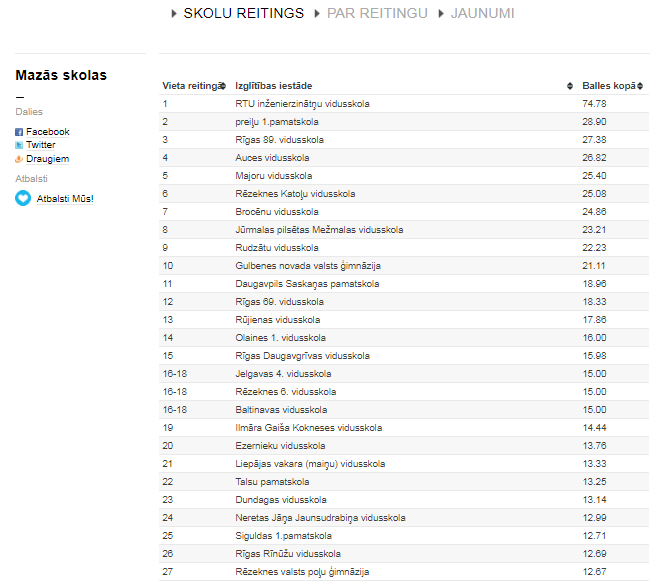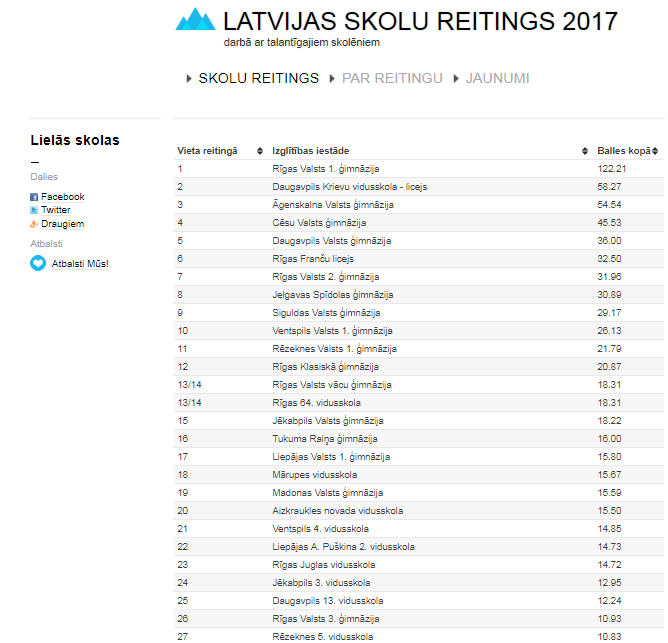 20.07.2017 18 июля 2017 года, был объявлен рейтинг „больших” (количество учеников средней школы - не меньше 100 человек) и „малых” (количество учеников средней школы- меньше 100 человек) школ.