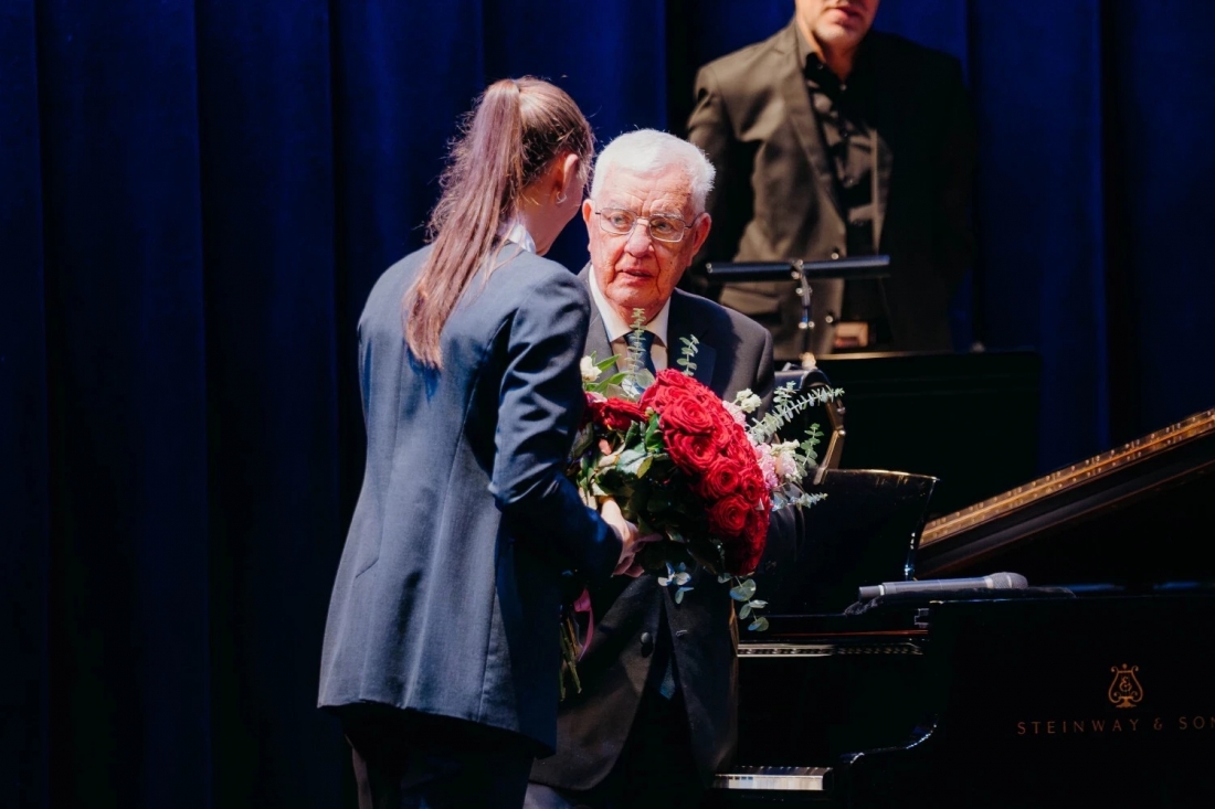 14.01.2025 12 января в концертном зале "Дзинтари" состоялся особый концерт в честь 89-летия Раймонда Паулса. Это мероприятие уже стало ежегодной традицией в Дзинтари, где Маэстро выступает вместе со своими единомышленниками по сцене. На этот раз компанию Паулсу составили солист Эдгар Ошлея и биг-бенд Латвийского радио.Маэстро Раймонд Паулс всю свою творческую жизнь открывает таланты, постоянно находя новые голоса для своих песен. Эта традиция продолжается и в 2024 году, когда Маэстро начал сотрудничество с молодым и талантливым басом Латвийской Национальной оперы Эдгаром Ошлеей, лауреатом Латвийской Большой музыкальной премии 2021 года в категории «Молодой артист года». Эдгар Ошлея – один из ярчайших оперных солистов своего поколения, а в жанре эстрадной музыки он дебютировал именно благодаря сотрудничеству с Раймондом Паулсом. Специально для голоса Эдгара Маэстро написал новые песни, которые уже вышли в альбоме «Песни Раймонда Паулса исполняет Эдгар Ошлея» и прозвучали на нескольких концертах в Латвии. В концертном зале «Дзинтари» эти произведения прозвучали в новых аранжировках для биг-бенда.