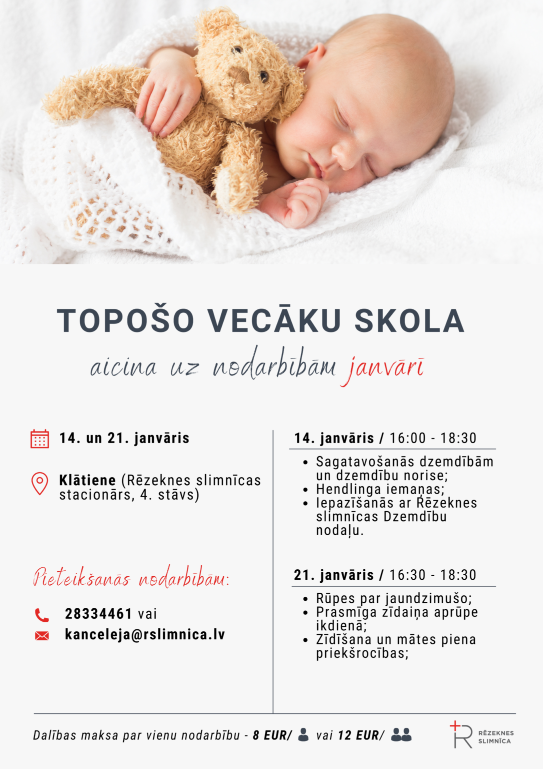 07.01.2025 Чтобы помочь молодым родителям подготовиться к появлению ребенка в семье, в Резекненской больнице организуется "Школа будущих родителей", в которой профессиональные и опытные врачи и специалисты делятся ценными знаниями о беременности, родах, уходе за малышом, кормлении, а также дают ответы на другие интересующие вопросы в связи с появлением малыша в семье.В январе запланированы два занятия "Школы будущих родителей" - 14 и 21 января, на которых педиатр Резекненской больницы доктор Марек Марчукс, акушерка Юлианна Дорошкевич, физиотерапевт Иева Григорьева и сестра по уходу за детьми Монта Василевска расскажут о подготовке к родам и проведению родов, кормлении и правильном уходе за младенцами, а также познакомят будущих родителей с новым родильным отделением Резекненской больницы.