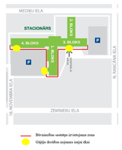 01.07.2025 Резекненская больница информирует, что в здании стационара в рамках проекта, софинансируемого планом механизма оздоровления и устойчивости, будут проведены работы по восстановлению фасада и упрощенной перестройке ряда входных узлов, из-за которых до мая 2026 года возможны периодические, кратковременные ограничения в организации движения и передвижении пациентов, а также изменения привычных потоков движения.Начиная с 25 июня 2025 года начата постепенная установка строительных лесов и временных ограждений строительной площадки вокруг здания стационара больницы, поэтому возможны кратковременные ограничения движения и парковки транспортных средств при подъезде к больнице со стороны ул. 18 Новембра и ул. Н. Ранцана.